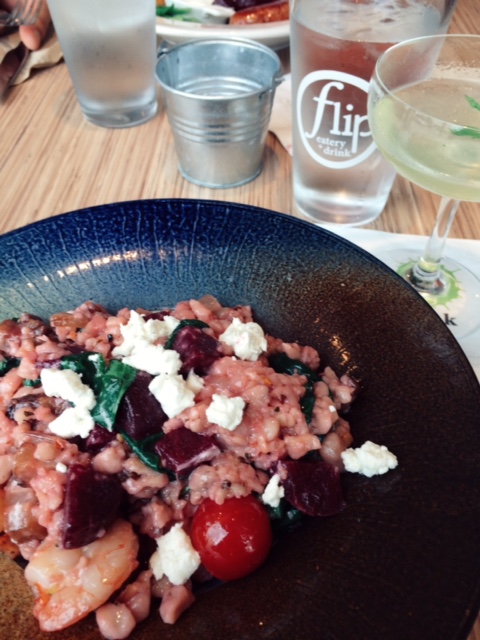 Monday night was date night for David and I since he would be working late this week. For dinner, we went to Flip – which is a restaurant that I had been wanting to go to for some time, but had never been. I ordered the special of the day, which was a shrimp spaetzle. Our waitress described spaetzle as the German version of gnocchi. So, in simplest terms, thick pieces of pasta. I am a huge fan of gnocchi, so that sold me. This is the best meal I have had at a restaurant since moving here. I can’t believe it took us this long to go to Flip!